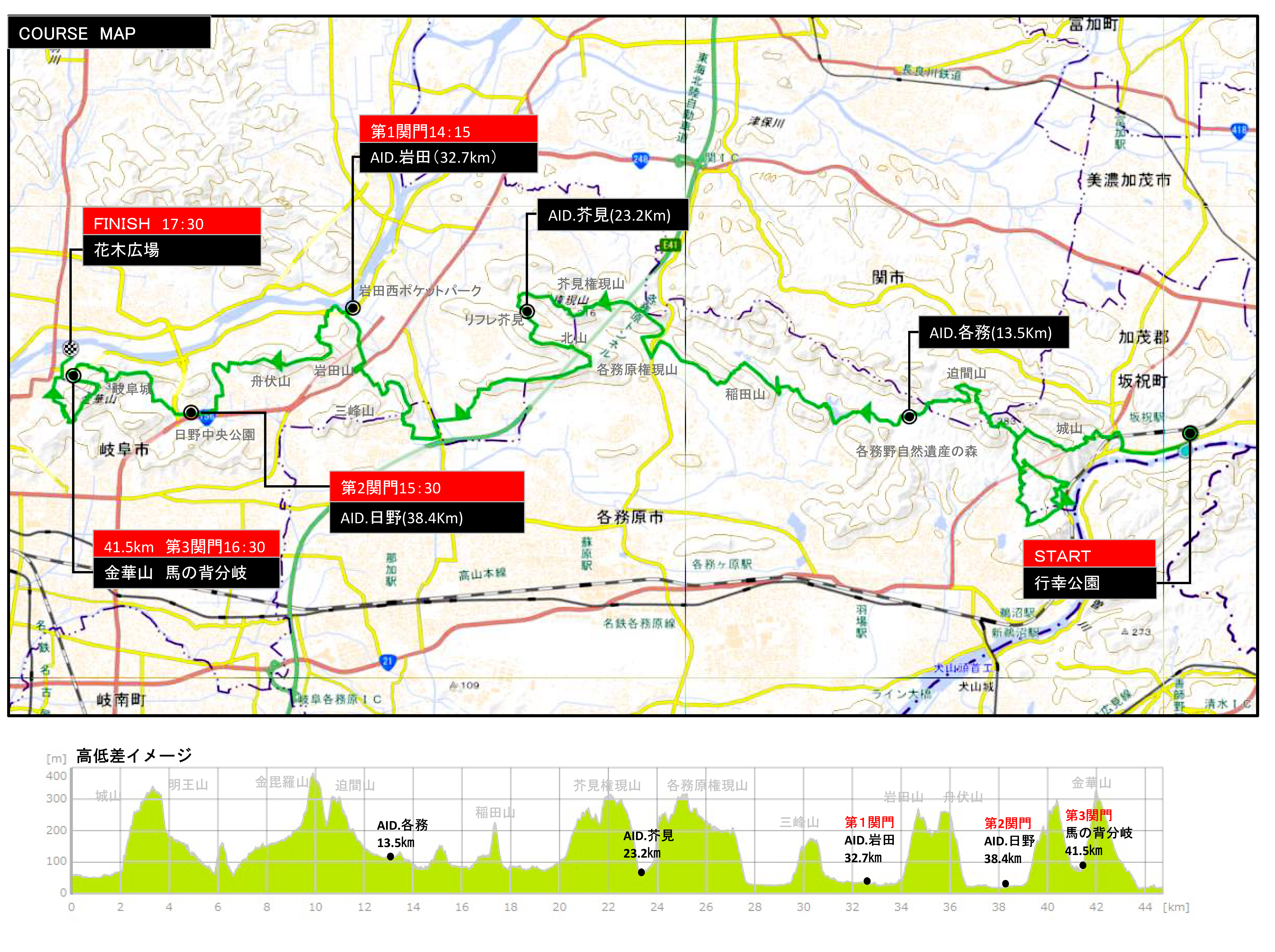 | エイド | 4ヵ所(AID各務/AID芥見/AID岩田/AID日野) |